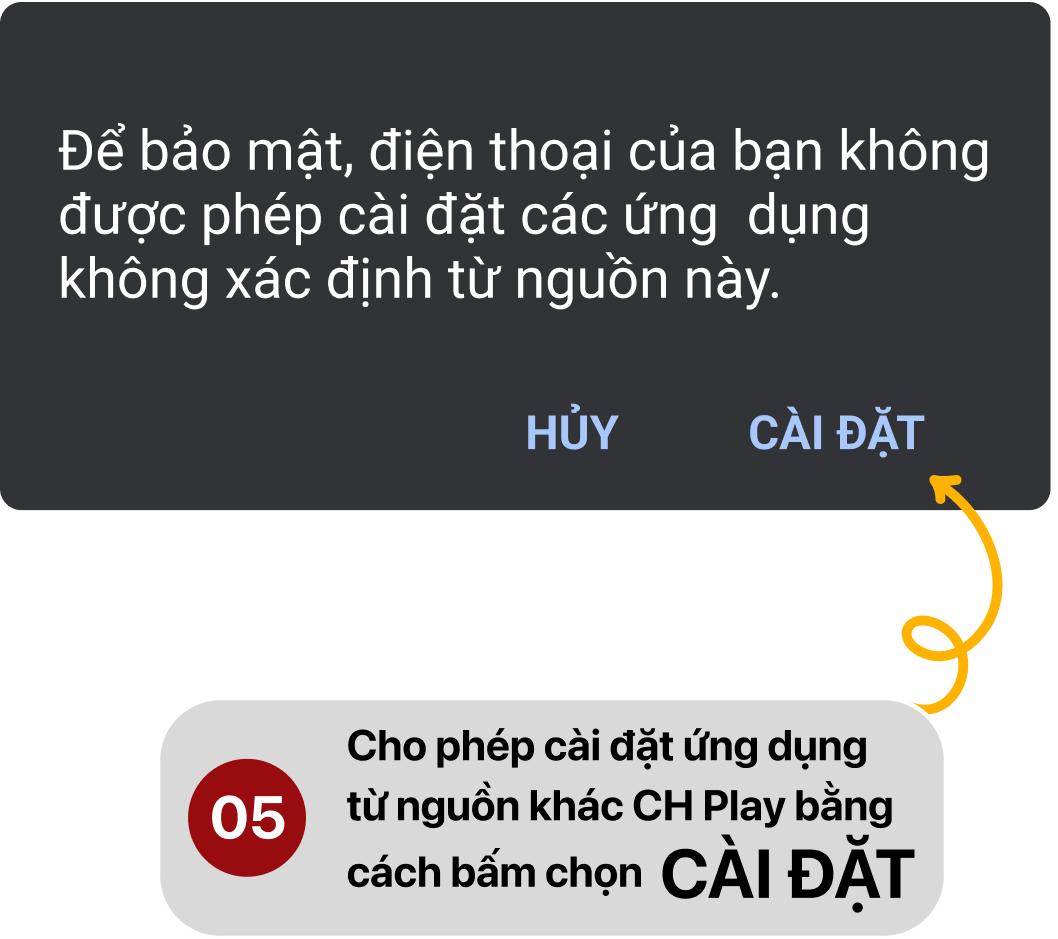 Sau khi tải file APK, bạn vào mục Cài đặt > Bảo mật > Cho phép cài file từ nguồn không xác định, sau đó mở file vừa tải để tiến hành cài đặt. Quy trình đơn giản, thường hoàn tất trong vài bước.